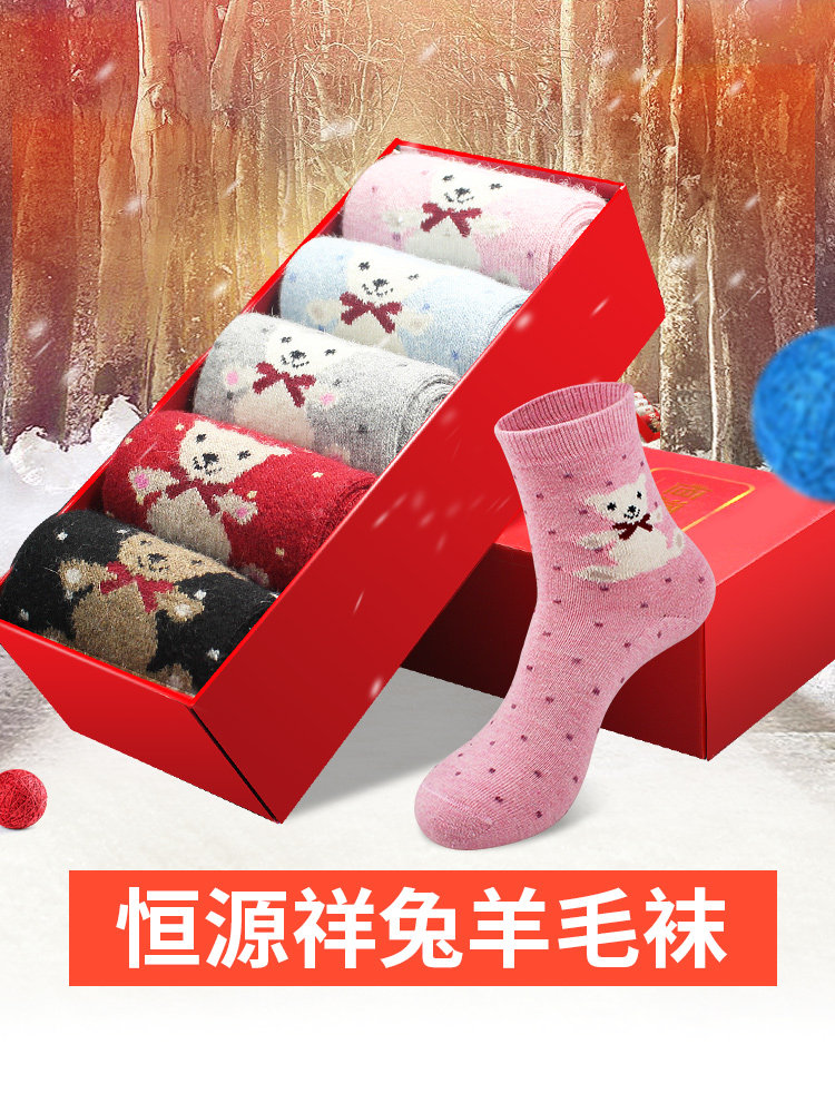 恒源祥兔羊毛袜女加绒加厚冬季女士可爱卡通圆头袜中筒少女甜美热门设计联盟服务商