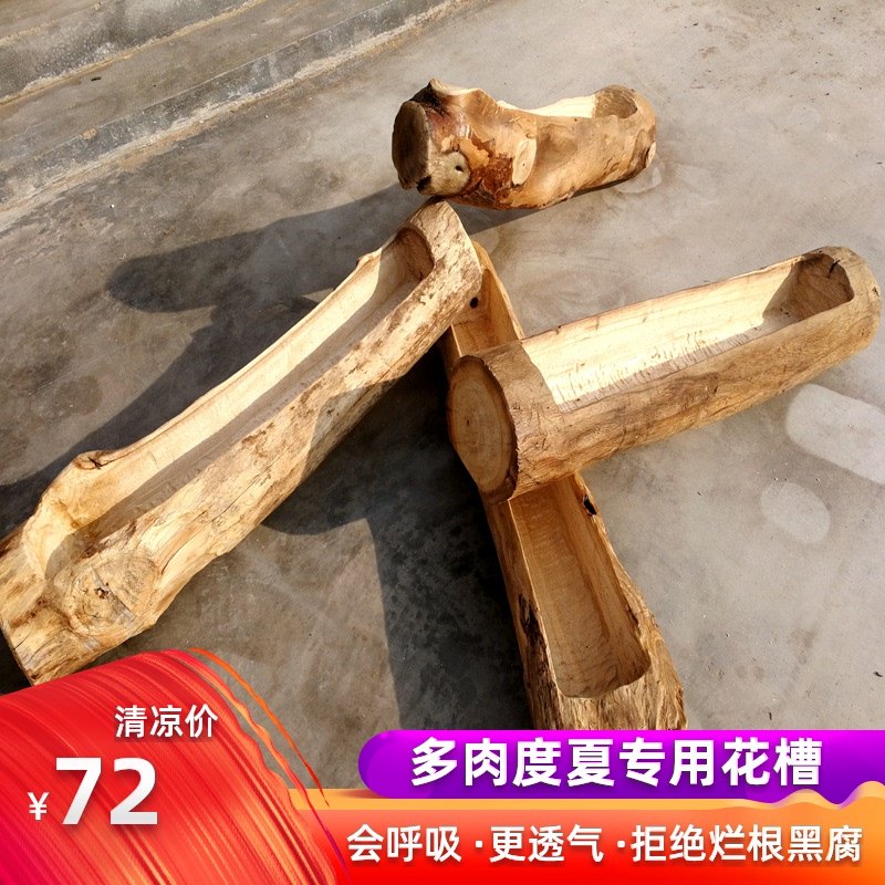 多肉木头槽长方形原木树桩阳台景观大口径特大树盆老桩透气木花盆热门设计联盟服务商
