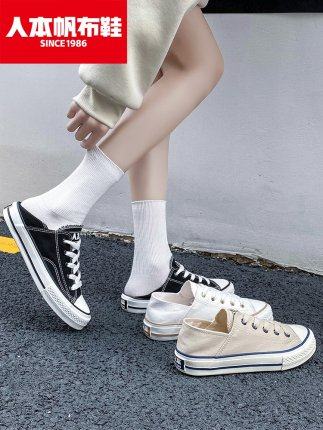 人本帆布鞋休闲百搭2021新款潮流懒人踩脚学生复瑰鞋ins款女热门设计联盟服务商