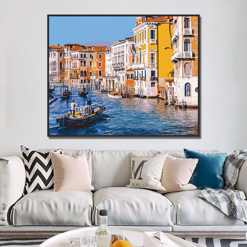 diy数字油画风景人物填色数码手绘欧式客厅装饰油彩画 威尼斯夜景热门设计联盟服务商