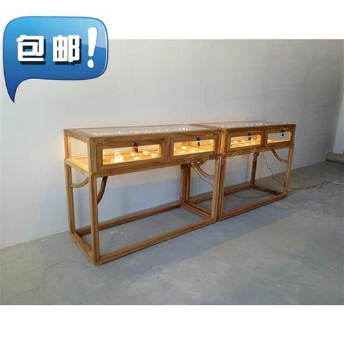 榆木免漆展柜精品玻璃陈列柜u实木珠宝柜台首饰货柜中式展示柜 原热门设计联盟服务商