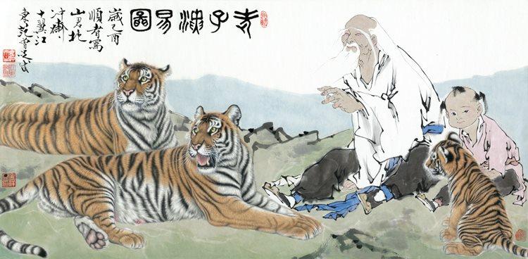 艺术微喷宣纸复制画范曾老子演义图国画人物老虎工笔虎横幅装饰画热门设计联盟服务商