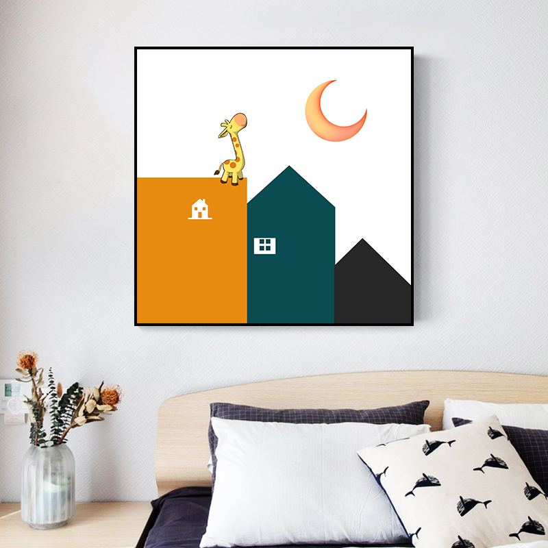 北欧卡通墙面装饰画男女孩卧室床头清新挂画儿童房壁画沙发背景墙热门设计联盟服务商