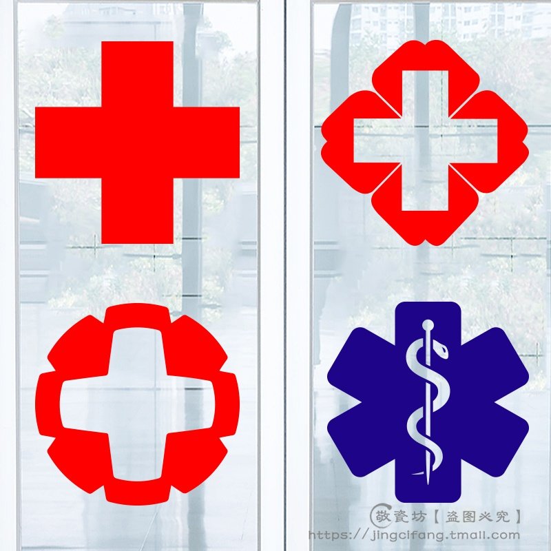 口腔医院药店玻璃窗贴纸救护车红十字墙贴纸诊所药房提示标志贴。热门设计联盟服务商