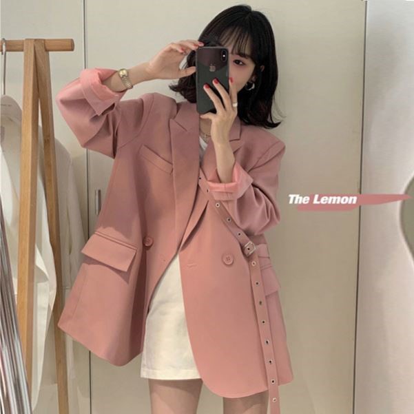 2021春季新款韩版宽松港风西服休闲蓝色西装外套女设计感小众上衣热门设计联盟服务商