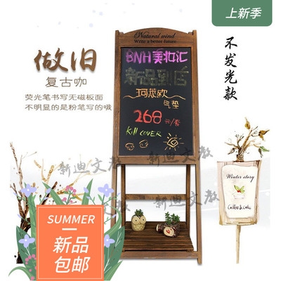 上新复古做旧实木花架立式小黑板商场店铺门口宣传广告板写粉简约热门设计联盟服务商