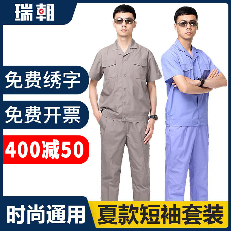 夏季短袖工作服套装男女工厂车间维修劳保服工地耐磨上衣工装定制热门设计联盟服务商