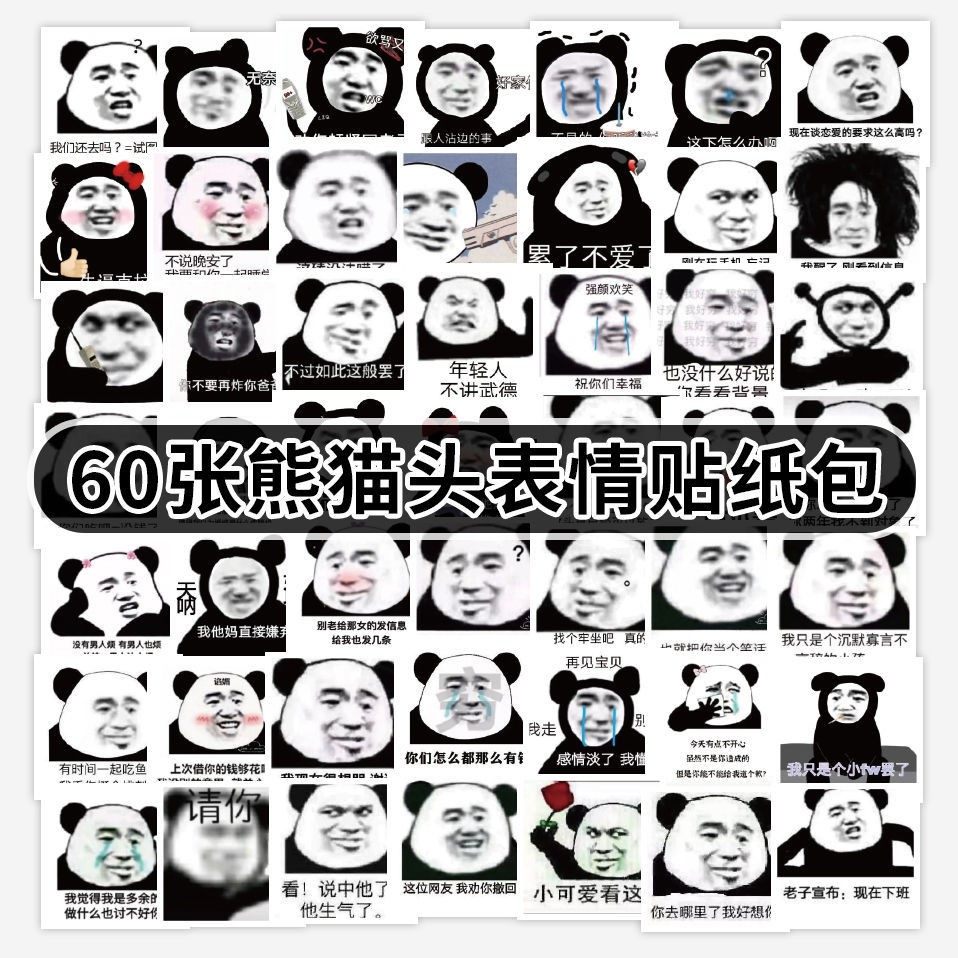 60张不重复熊猫头贴纸表情包沙雕可爱内涵污搞笑个性素材贴画ins热门设计联盟服务商