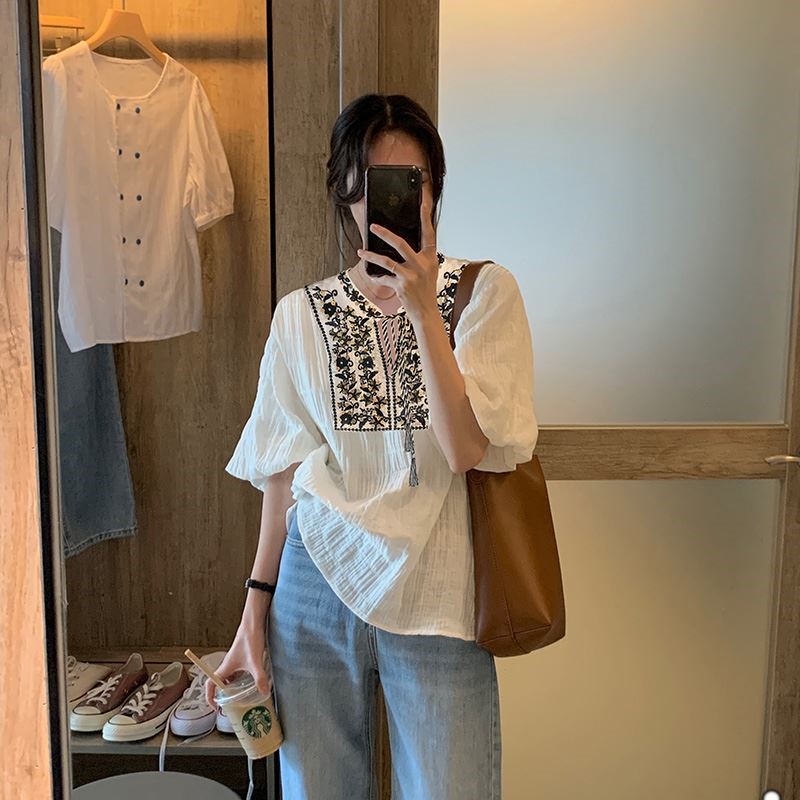 白色衬衫女时尚百搭2021年夏季新款韩版小个子设计感薄短袖上衣夏热门设计联盟服务商