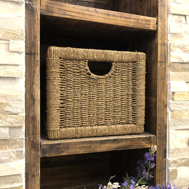艺然天成手工草编加厚实木框架客厅收纳筐展示柜抽拉框桌面整理框热门设计联盟服务商
