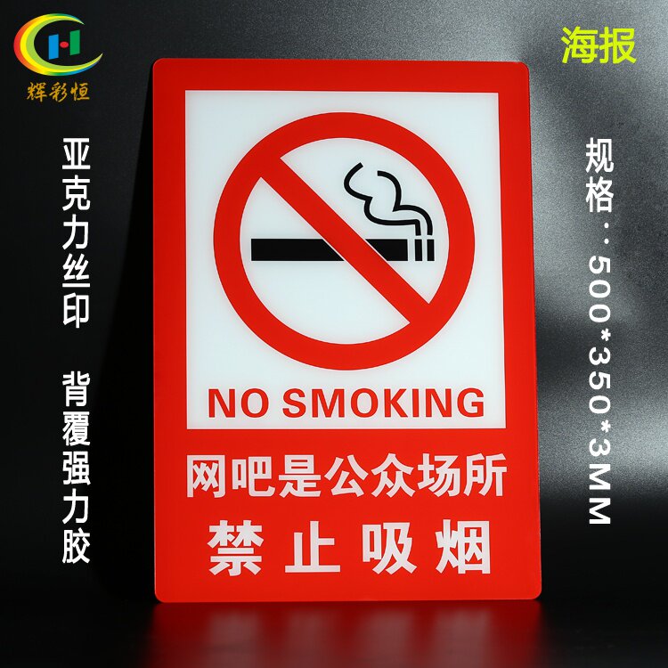 亚克力网吧禁止吸烟标识牌特大号公众场所禁烟警示标志牌海报提。热门设计联盟服务商