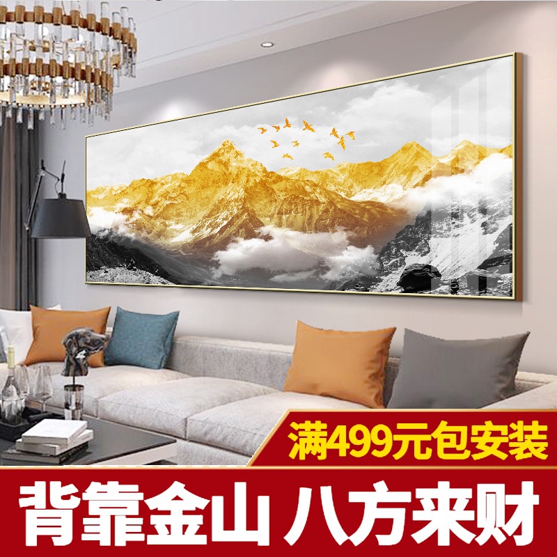 背靠金山装饰画客厅横幅挂画沙发背景墙壁画靠山画手工镶钻晶瓷。热门设计联盟服务商
