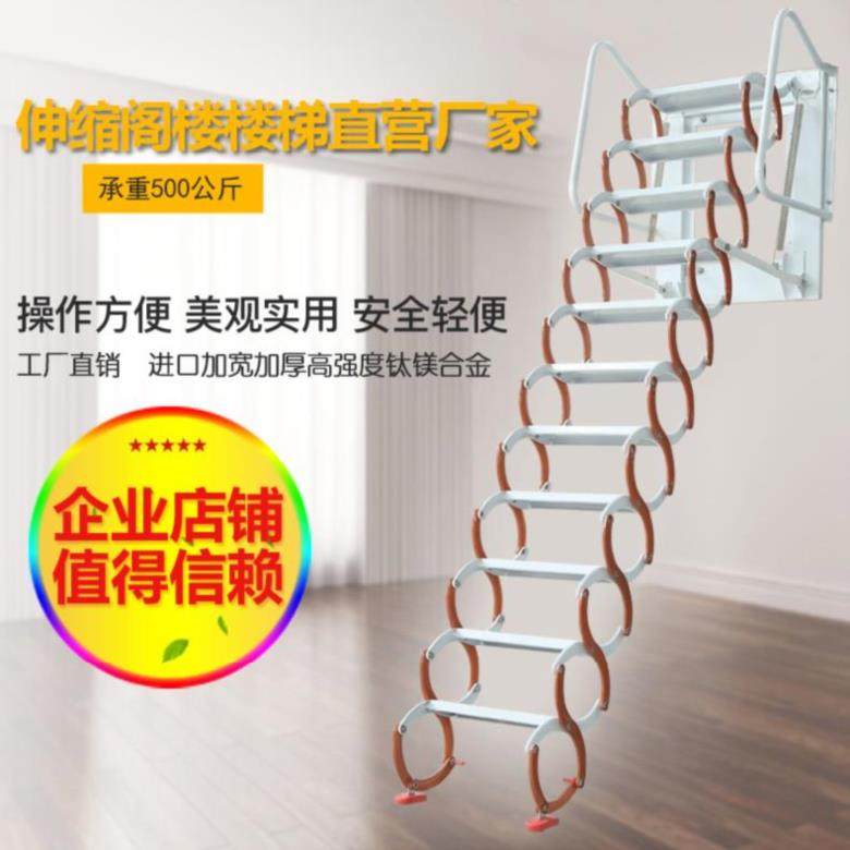 多功能钢结构加厚可移动楼梯台阶拉伸折叠空间伸缩扶梯半自动复。热门设计联盟服务商