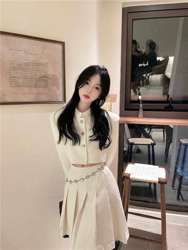 YummyYUMMY韩系秋冬女团奶油色小香设计感小众短款外套+百搭百褶热门设计联盟服务商