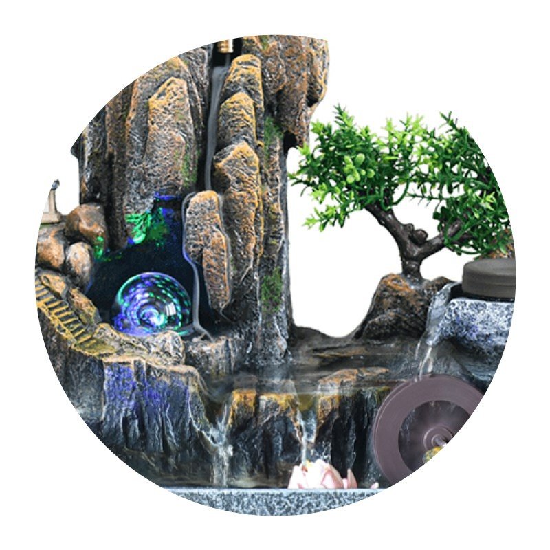 水喷泉景水车风件高山流水招财造室内假山装饰景观运球水轮摆小转热门设计联盟服务商
