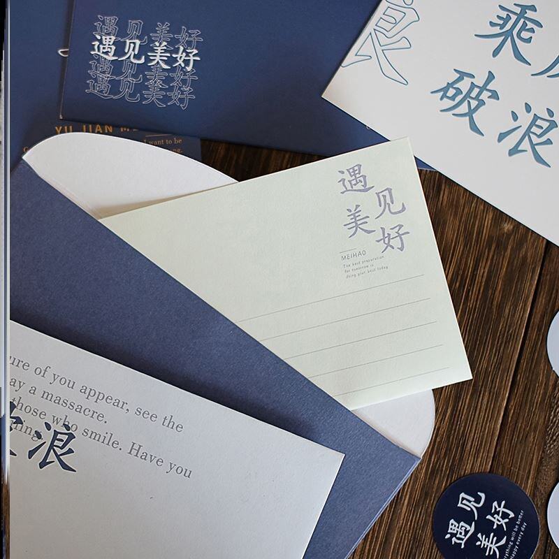 组合贺卡中国风留言信纸信封套装日系手写励志手账素材封口贴贴画热门设计联盟服务商
