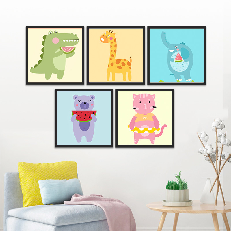 儿童数字油画油彩画装饰画动物儿童diy数字填色数码卡通可爱油画热门设计联盟服务商