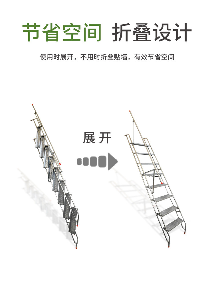 楼梯空间靠墙阁楼室内室外家用小户型省伸拉不锈钢折叠直梯工业梯热门设计联盟服务商