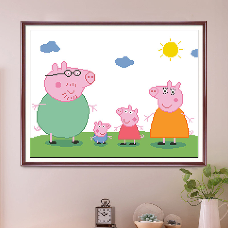 小猪佩奇一家十字绣线绣自己绣2021新款客厅儿童卧室卡通动漫小件热门设计联盟服务商