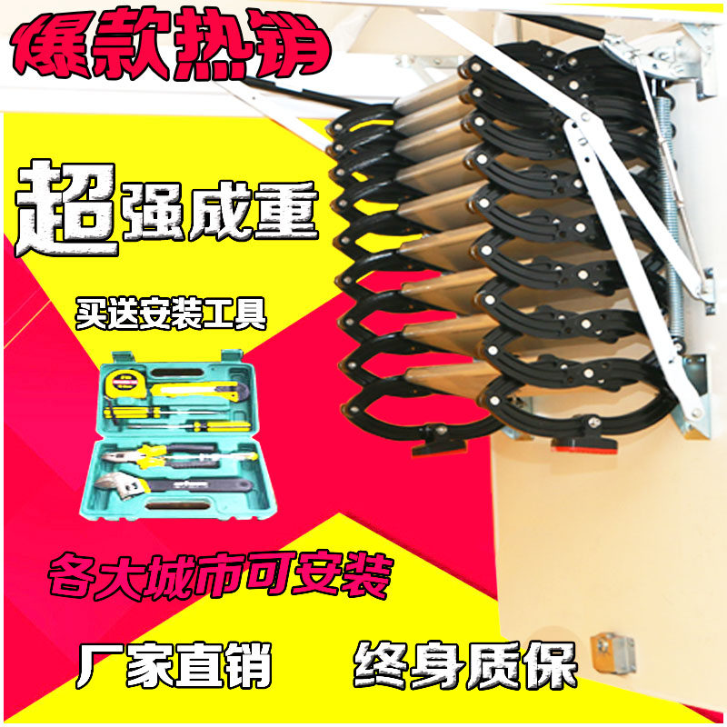 阁楼伸缩楼梯钛镁合金加厚别墅家用室内室外壁挂升降隐形折叠梯子热门设计联盟服务商