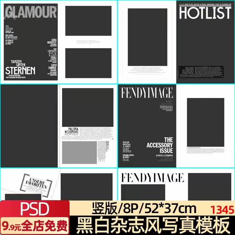 时尚杂志风黑白个人PSD相册模板摄影楼工作室沛素材竖版热门设计联盟服务商