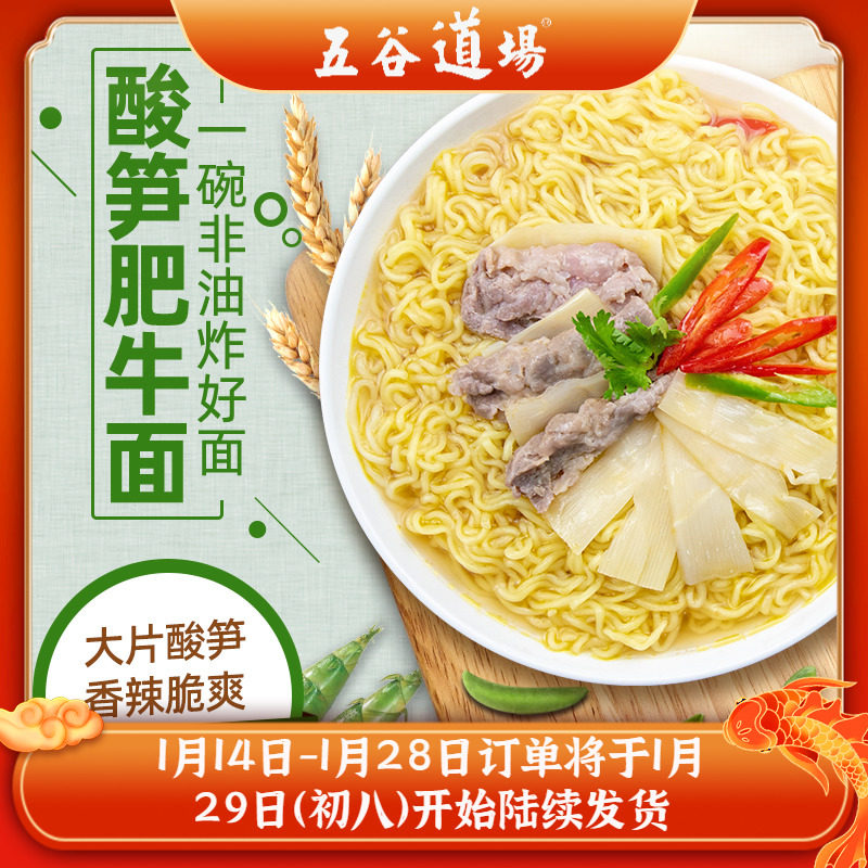 五谷道场非油炸方便面整箱酸笋肥牛面袋装网红速食食品网红泡面热门设计联盟服务商