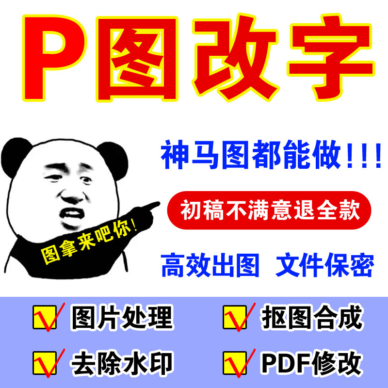 P图片处理ps修图无痕专业修改PDF文档手写字扫描复印件批图去水印热门设计联盟服务商