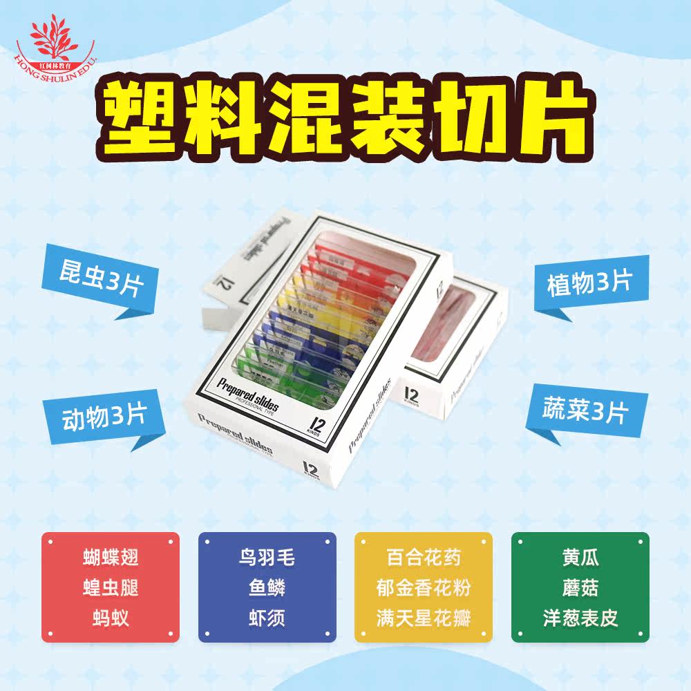 混装12片彩色塑料制生物标本切片儿童科普玩具礼物显微镜观察玻片热门设计联盟服务商