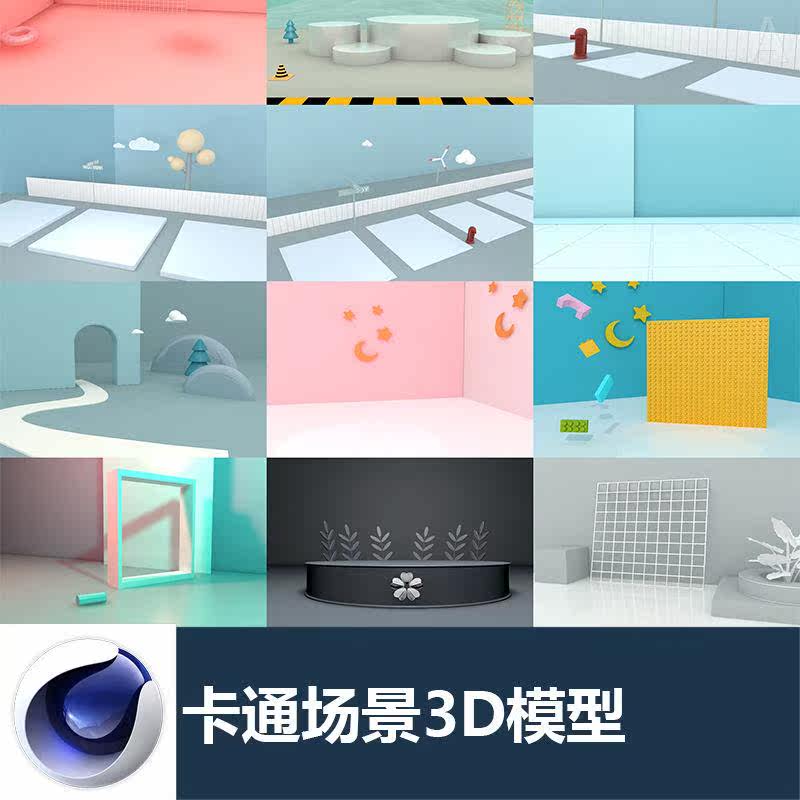 C4D卡通简单场景背景摩天轮床楼房创意形状3D模型源文件下载热门设计联盟服务商